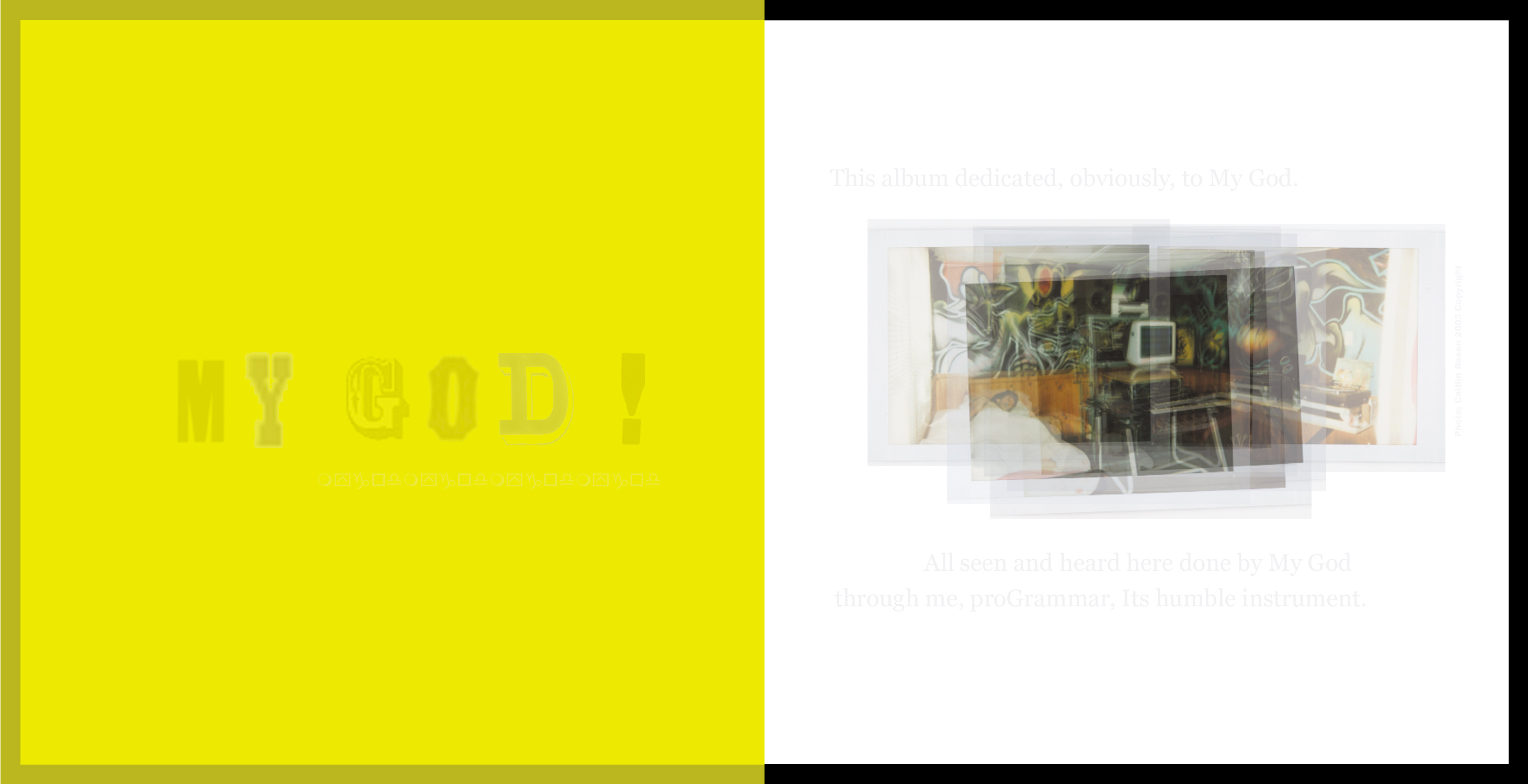 Wow, what can I say about this album?... My first attempt to explicate my connection to My God. Many ppl thought I was Christian based on this album, but absolutely not... Have been meaning (for quite some time) to write up the whole thing; the whole interconnected mess, but haven't had a ton of luck til this year. Having a muse helps... It'll be ready soon; before the end of this year, I hope...